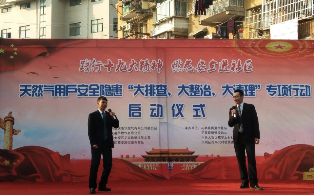 為認(rèn)真貫徹落實(shí)市住房城鄉(xiāng)建設(shè)委、安監(jiān)局、公安消防支隊(duì)三部門聯(lián)合發(fā)出的《關(guān)于開展城區(qū)天然氣用戶安全隱患專項(xiàng)整治工作的通告》(下稱“專項(xiàng)整治通告”)精神,12月12日,針對(duì)全市民用天然氣客戶戶內(nèi)安全隱患“大排查、大整治、大清理”專項(xiàng)行動(dòng)啟動(dòng)儀式在我市花亭北村廣場(chǎng)舉行。這是迄今為止整改力度最大、涉及范圍最廣的一次燃?xì)獍踩[患集中大清理,也是安慶港華踏實(shí)踐行黨的“十九大精神”,推動(dòng)“十九大精神”在工作中落地生根的具體體現(xiàn)。