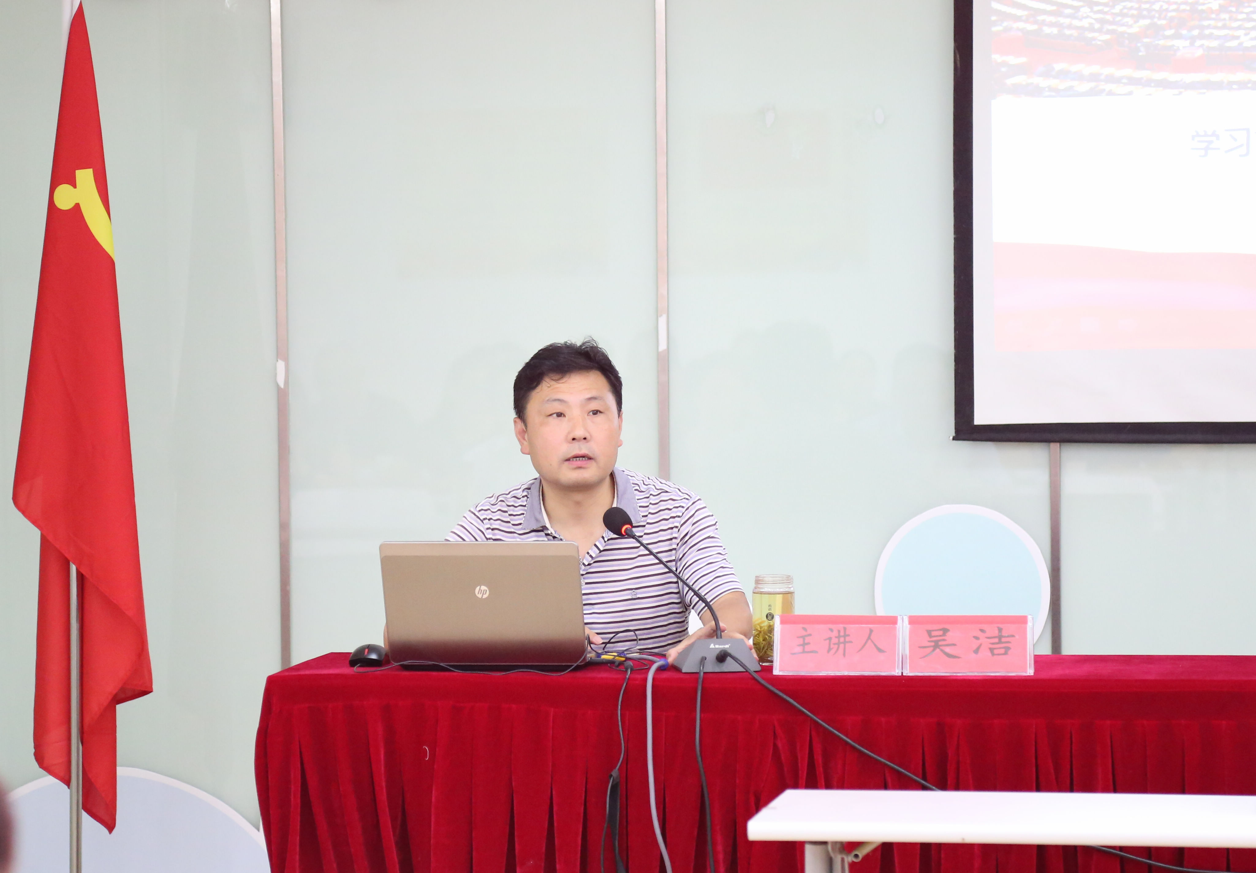 授課中,吳潔教授以“學(xué)習(xí)貫徹習(xí)近平新時代中國特色社會主義思想和黨的十九大精神”為主題,從深刻領(lǐng)會黨的十九大主題及主要成果、習(xí)近平新時代中國特色社會主義思想的歷史地位和豐富內(nèi)涵、十八大以來黨和國家發(fā)生的歷史性變革、新時代的社會主要矛盾新變化、全面建設(shè)現(xiàn)代化強國的戰(zhàn)略部署、堅定不移全面從嚴治黨的重大部署等六個方面,對習(xí)近平新時代中國特色社會主義思想及黨的十九大精神作了系統(tǒng)、全面的解讀與闡述。吳教授結(jié)合自己的學(xué)習(xí)體會,運用了大量生動的數(shù)據(jù)和事例,語言通俗易懂,邏輯清晰有秩,不斷引起在場黨員的共鳴,會上反響熱烈。