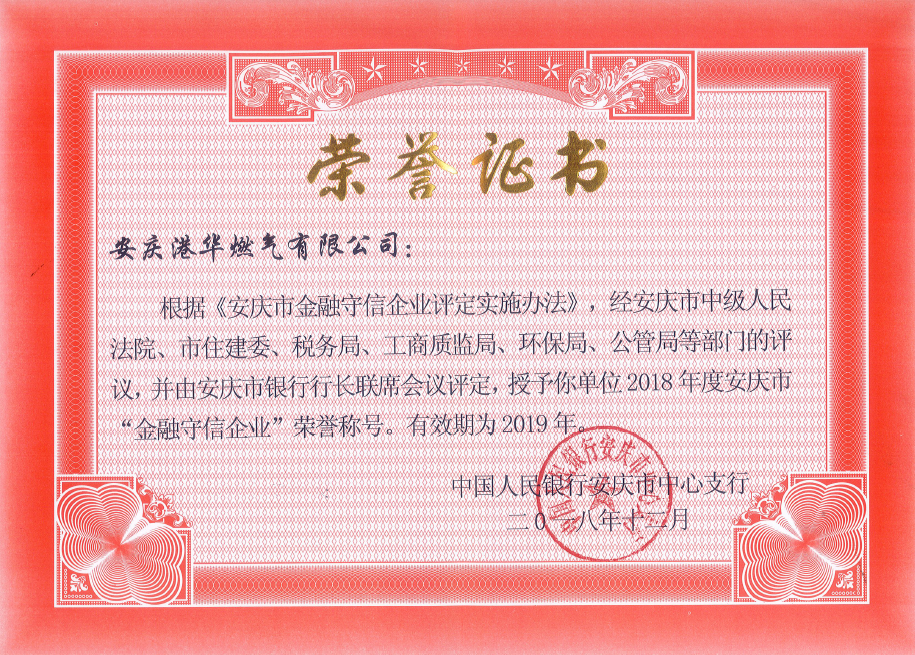 安慶港華再次榮獲“金融守信企業(yè)”稱(chēng)號(hào)
