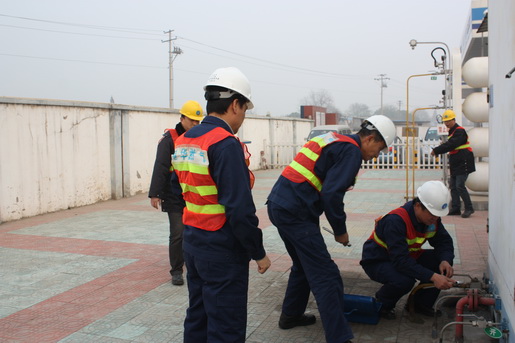 12月6日下午15時(shí)50分,安慶港華燃?xì)饧t關(guān)CNG加氣站內(nèi)響起急促燃?xì)鈭?bào)警器聲。緊接著,加氣工迅速關(guān)閉加氣機(jī)應(yīng)急球閥停止加氣,禁止車輛移動(dòng),并大聲呼喊:“漏氣了,大家快撤到站外安全地帶?!?/span>15:52分,站內(nèi)司乘人員在加氣工的指導(dǎo)下,全部撤到站外,并在站外拉起警戒線。16:00,站內(nèi)搶修人員通過對(duì)泄漏現(xiàn)場(chǎng)的初步判斷泄漏來自2#壓縮機(jī)處,立即停止壓縮機(jī)工作。如此同時(shí),當(dāng)班班長(zhǎng)立即把現(xiàn)場(chǎng)情況向站長(zhǎng)報(bào)告。16:10分,接到指令的站、部門負(fù)責(zé)人帶領(lǐng)部門應(yīng)急行動(dòng)小組趕到現(xiàn)場(chǎng)。經(jīng)過各行動(dòng)小組緊張、有序的處置,僅用20分鐘的時(shí)間就成功檢查并消除了泄漏——2#壓縮機(jī)法蘭處。16:32,現(xiàn)場(chǎng)指揮發(fā)出:“解除警戒,演練結(jié)束”指令。