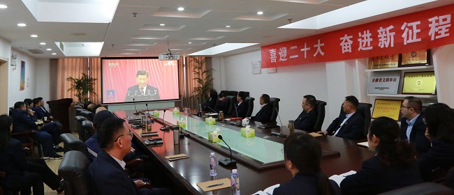 在公司行政大樓收看現(xiàn)場(chǎng),大家聚精會(huì)神聽(tīng),專心致志看,深切地感受到,習(xí)近平總書記的重要講話內(nèi)涵豐富、思想深邃,讓人備受鼓舞、備感振奮。黨的二十大是在全黨全國(guó)各族人民邁上全面建設(shè)社會(huì)主義現(xiàn)代化國(guó)家新征程、向第二個(gè)百年奮斗目標(biāo)進(jìn)軍的關(guān)鍵時(shí)刻召開(kāi)的一次十分重要的大會(huì),是黨和國(guó)家政治生活中的一件大事。