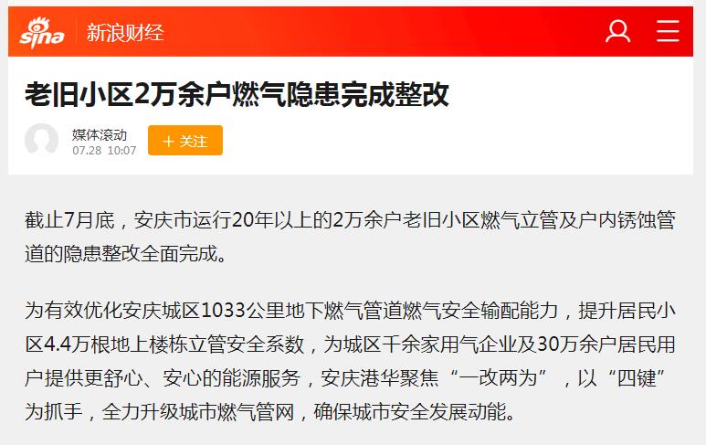 老舊小區(qū)2萬余戶燃氣隱患完成整改(轉(zhuǎn)載于新浪財經(jīng))