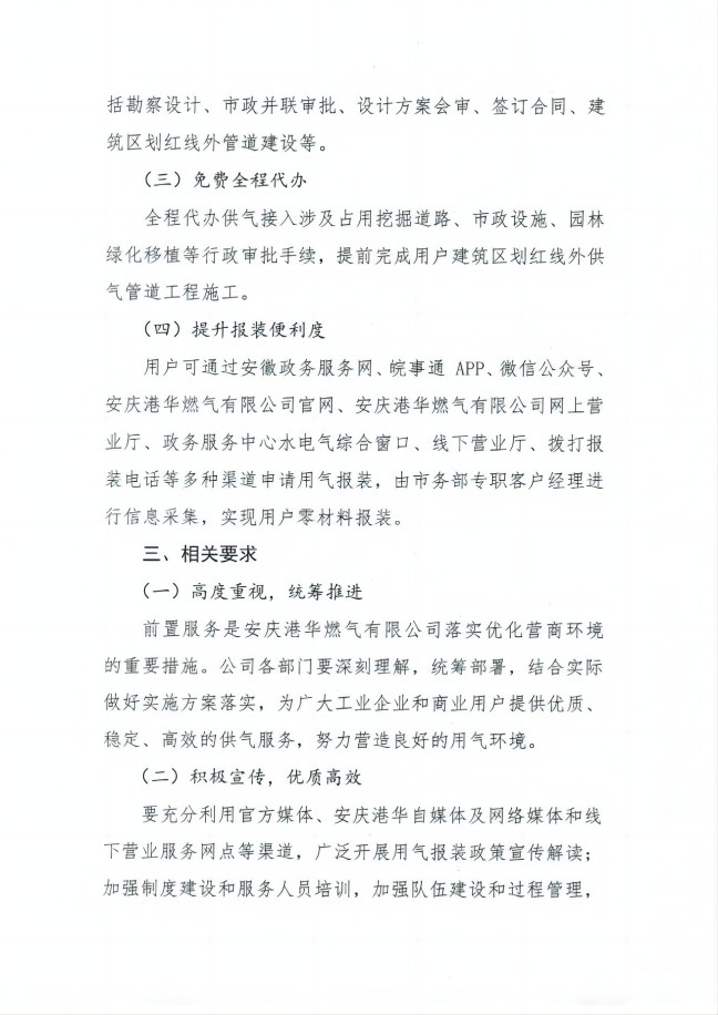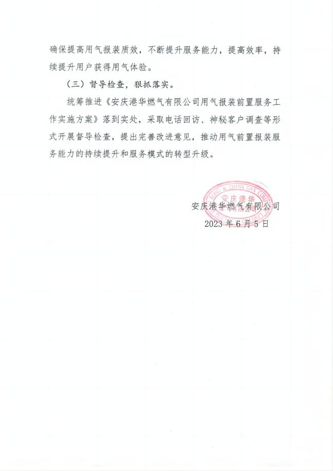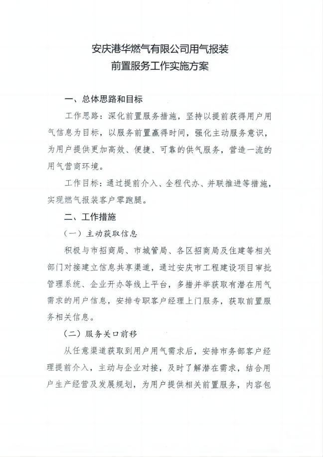 安慶港華燃?xì)庥邢薰居脷鈭笱b 前置服務(wù)工作實施方案
