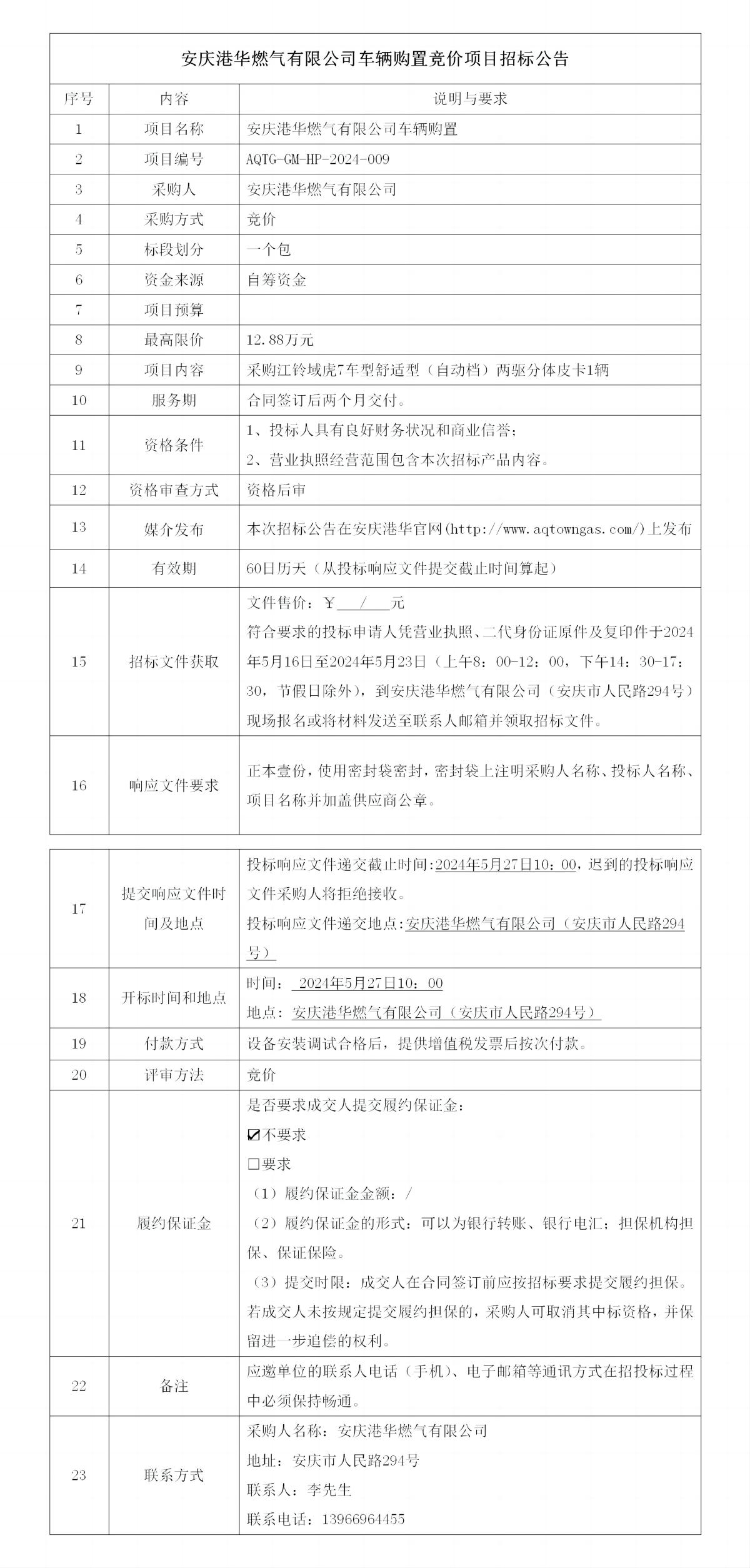 安慶港華燃?xì)庥邢薰拒囕v購置競價(jià)項(xiàng)目招標(biāo)公告