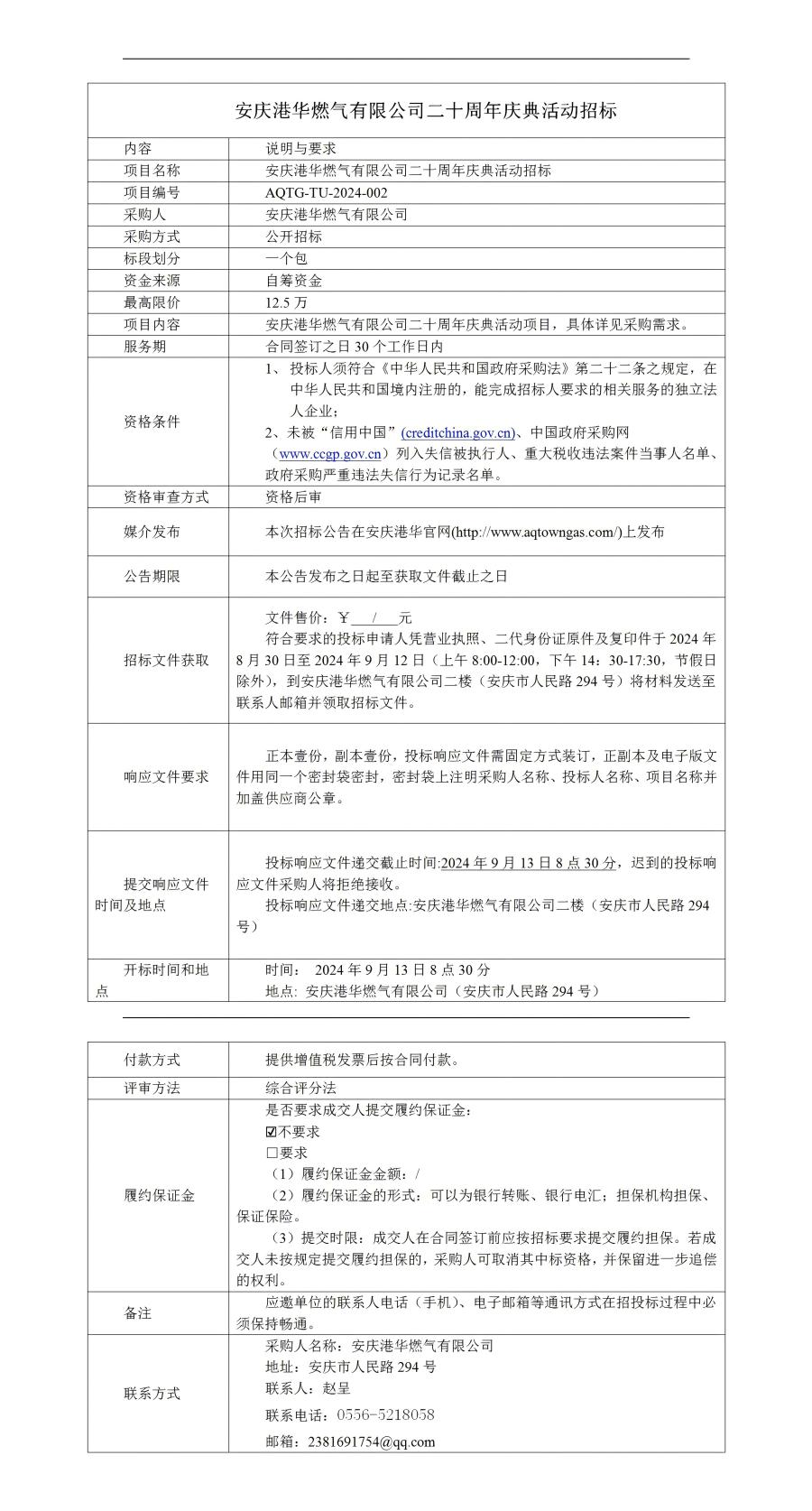 安慶港華燃?xì)庥邢薰径苣陸c典活動招標(biāo)