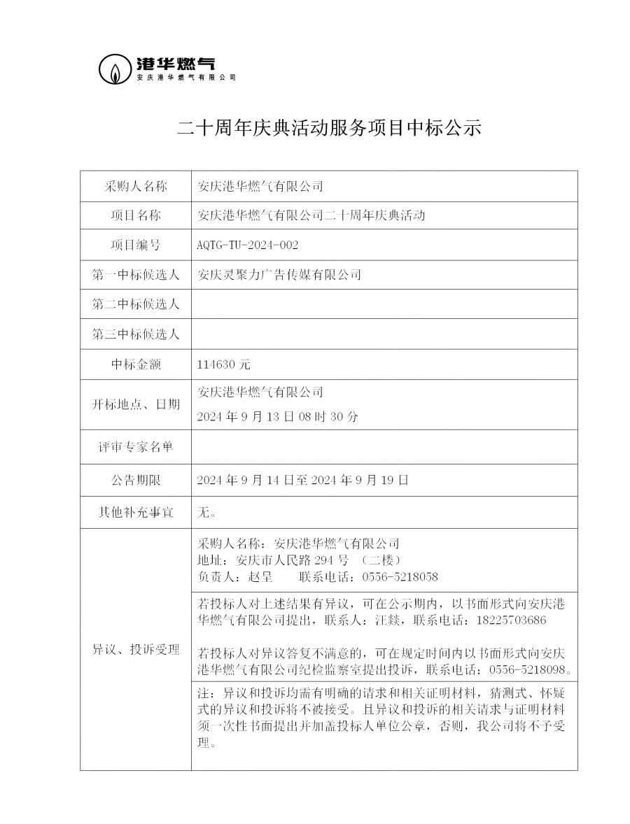 二十周年慶典活動服務項目中標公示