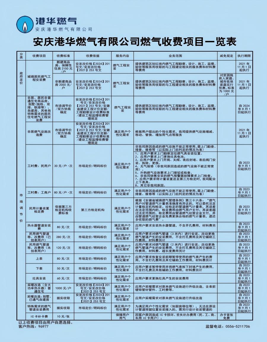 安慶港華燃?xì)庥邢薰臼召M(fèi)項(xiàng)目一覽表(2025)