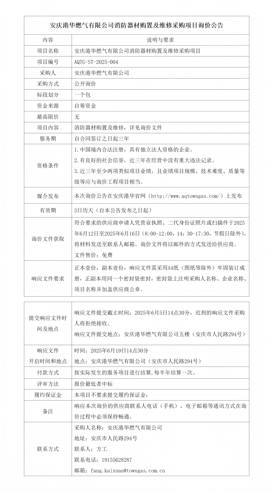 安慶港華燃?xì)庥邢薰鞠榔鞑馁徶眉熬S修采購項(xiàng)目詢價(jià)公告