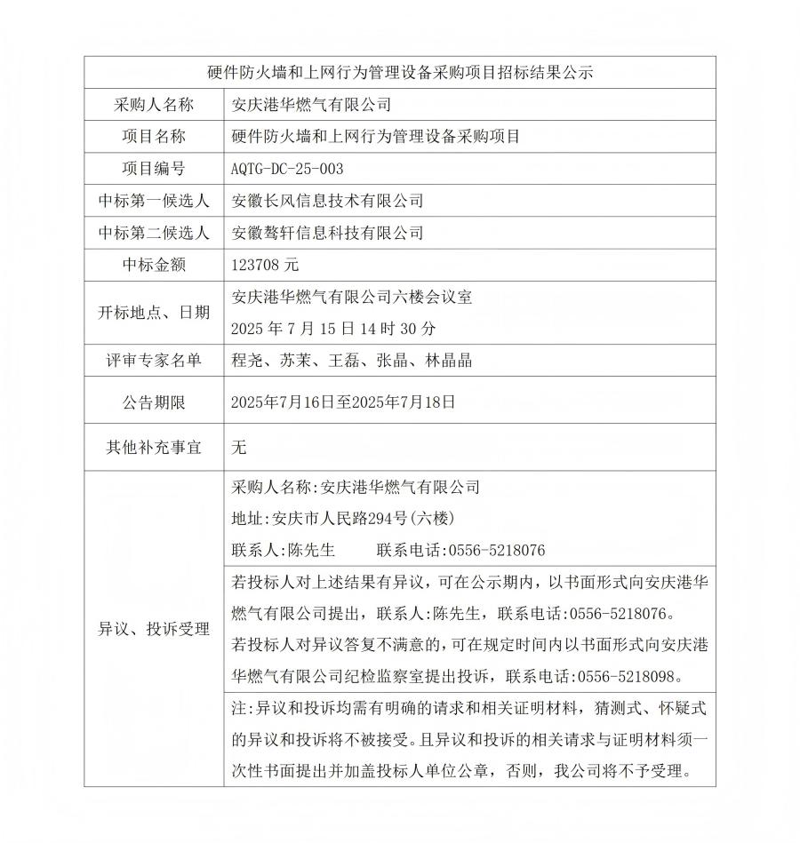 硬件防火墻和上網(wǎng)行為管理設(shè)備采購項目招標結(jié)果公示
