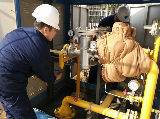 圖為管網(wǎng)運(yùn)行人員正在檢查燃?xì)庹{(diào)壓設(shè)施
