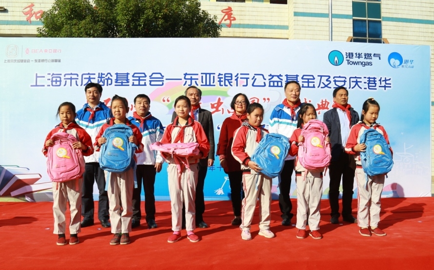 11月1日,港華燃?xì)饧瘓F攜手上海宋慶齡基金會—東亞銀行公益基金,在太湖縣大石小學(xué)舉行“螢火蟲樂園”落成典禮暨港華集團華東地區(qū)“輕風(fēng)行動”揭牌儀式。來自安慶市扶貧辦、市住建委、太湖縣政府、縣教育局的有關(guān)領(lǐng)導(dǎo),以及東亞銀行(中國)、港華燃?xì)饧瘓F、港華集團華東義工總隊、安慶港華燃?xì)獾?/span>70余位嘉賓和義工出席并見證了典禮儀式。