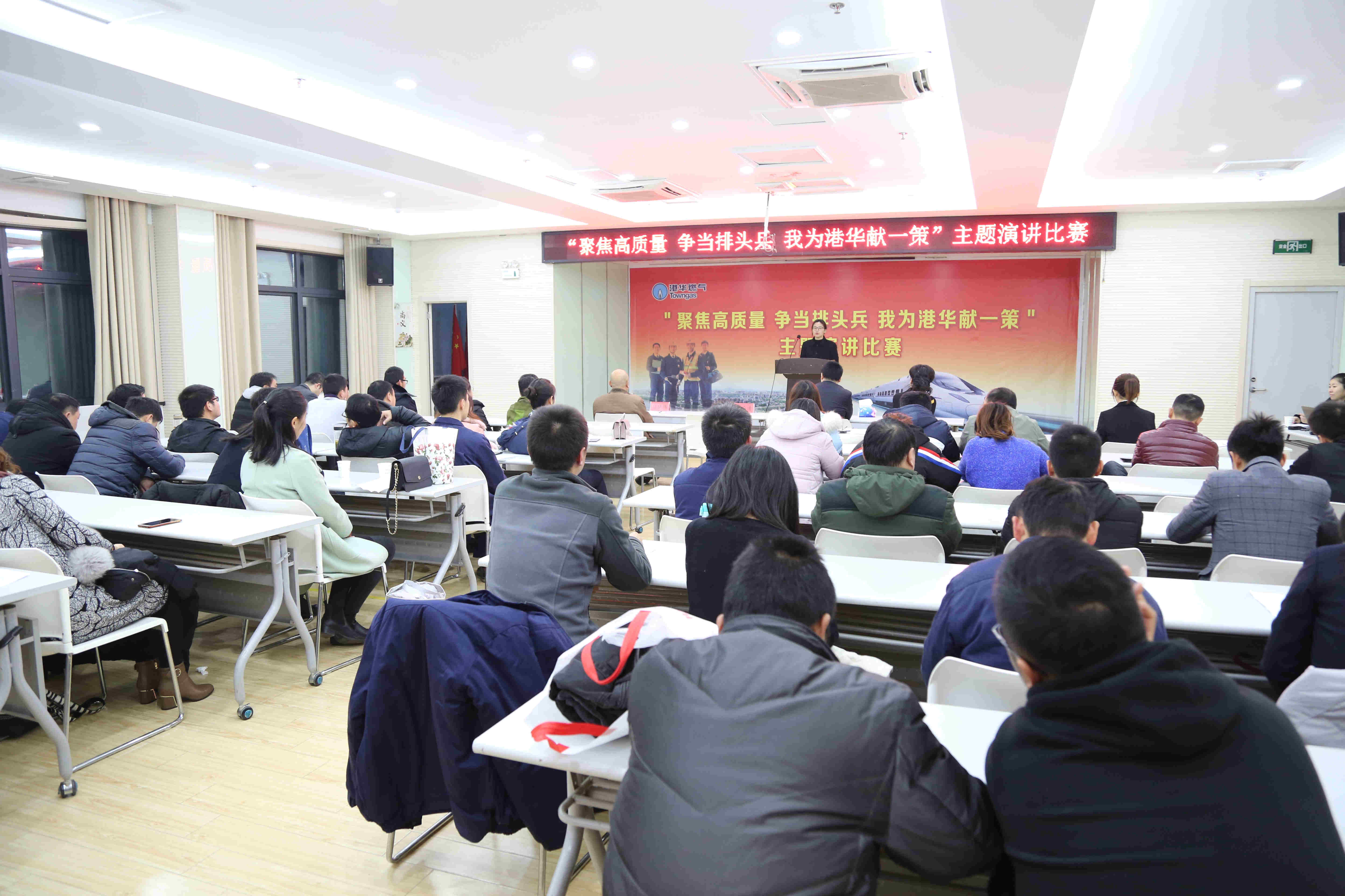 為進(jìn)一步掀起“聚焦高質(zhì)量,爭當(dāng)排頭兵”解放思想大學(xué)習(xí)大討論活動熱潮,推動企業(yè)文化建設(shè),展現(xiàn)港華員工積極投身安慶高質(zhì)量發(fā)展的決心和信心,12月12日晚,安慶港華舉行了一場“聚焦高質(zhì)量 爭當(dāng)排頭兵 我為港華獻(xiàn)一策”主題演講比賽活動,來自公司各崗位的17名選手參加了比賽。