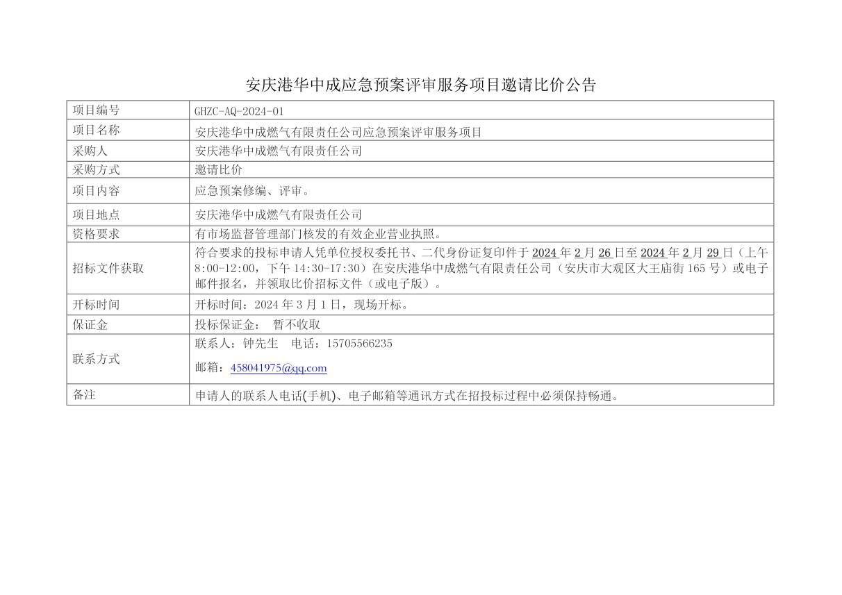 安慶港華安全現(xiàn)狀評價報告編制項目邀請招標...