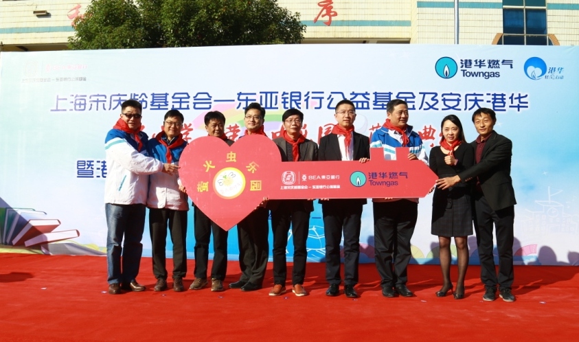 11月1日,港華燃?xì)饧瘓F攜手上海宋慶齡基金會—東亞銀行公益基金,在太湖縣大石小學(xué)舉行“螢火蟲樂園”落成典禮暨港華集團華東地區(qū)“輕風(fēng)行動”揭牌儀式。來自安慶市扶貧辦、市住建委、太湖縣政府、縣教育局的有關(guān)領(lǐng)導(dǎo),以及東亞銀行(中國)、港華燃?xì)饧瘓F、港華集團華東義工總隊、安慶港華燃?xì)獾?/span>70余位嘉賓和義工出席并見證了典禮儀式。